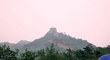 Nu stahn wi bi Rägenwerrer un Wolken, dei oewer dat Gebirge trecken, an Uurt un Stell, seihn mit eigen Oogen "The Great Wall", "De Grote Muur" upbuucht vör dusenden Johren un treckt sick oewer dei Gebirgsklippen hinwech, so wied uns Oogen kieken koenen.