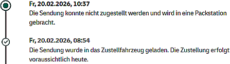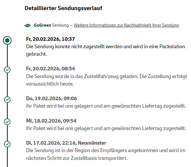 20.2.26 ...Keen Hooch op den gelen Wagen! Friedag. Ik heff mi frienahmen un bün tohuus, wieldat en Paket kamen schall. Den Tostelldag heff ik extra per Onlineformular op hüüt leggt, un DHL hett den Leverdag bestätigt. So vun Klock acht an bün ik waak. De Dören laat ik anlehnt, dat ik de Döörklingel nich överhören do. Wedder un wedder aktualiseer ik de Siet mit den Sendungsverloop. Mien Paket liggt in't Tostellfohrtüüg, in so'n gelen Wagen. Upps op eenmal nich mehr?! Dat kunn nich tostellt warrn un kümmt nu in de Packstaschoon?! Un ik kann eerst an'n Avend dor ran?!?!? Ik weet, de Fohrers un Fohrerschen hebbt veel Stress un sünd slecht betahlt. Un en Paket mit Böker is swoor, ok wenn du dat bloots een Trepp hooch slepen schast. Man woso verköfft se denn so'n Deenstleisten, wenn se got nich vörhebbt, dat ok to maken?! |