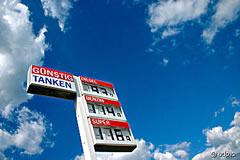 Tankstell. Bet acht Cent per Liter kannst mit reken.