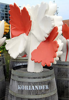 Rosenduft ümweiht, ik much mi gor nich trennen. Un denn heff ik noch nie se vele vun uns gode olle Buntnessel up'n Hupen sehen, as hier. Se lüchen in deep satt düüsterroot, man ok in dat bekannte root-gröön, ut vele Beete. Wi hebbt veel ünnerschiedlich Schrebergoorns ankeken un ok Loki Schmidt ehre lütte "Wildnis". Wi kemen an en Stück Heide vörbi. De Erika füng graad an mit't Blöhen un ok en lialütt Hünengrav hebbt wi dor funnen, so lütt, dat kunn blots för Poppen west sien. Beten wat erschöpft hebbt wi in dat olle "Wasserwerk" Middag eten. Matjes mit Gröne Bohnen. Weer goot. Un en Glas Wien hett denn ok unse Levensgeister wedder in'n Gang sett. Bet Klock söven an'n Avend sünd wi vergnöögt dörch de Utstellung rullt. Mien leef Mann hett in Ruh al de Hüüs, de dor nieg buut sünd, ankeken un kommenteert. Un denn hebbt wi uns ok noch en Rundfohrt mit de Tog, de up een Schien över dat Utstellungsgelände rullt, gönnt. De Schiene is up Stelzen verleggt, so dat wi goot kieken kunnen. Dorto vertell de NDR över allens, wat dat rundüm to kieken geev. Dat Motto vun diese Goornschau is "In 80 Goorns üm de Welt", na de Idee "In 80 Daag üm de Welt" vun Jules Verne. Ik tell mal up, wat ik allens sehen heff, an wat ik mi erinner: