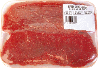 uns Fleesch nu op sien Förderband;