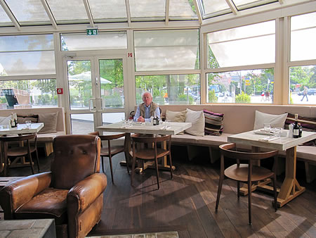 Jeedeen Platz hett en Computer-Ansluss, un du müsst allens per Computer bestellen! En Digital-Restaurant! Toeerst weern wi beförchten, wi kregen hier bloots Bits un Bytes to eten, aver dat Eten, dat de Lüüd an de Naverdischen serveert kregen, sehg beruhigend echt ut. Na denn ran!