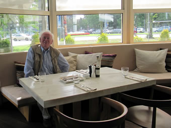 also sien Dessert un sienen Espresso, dorto en Buddel Wien för