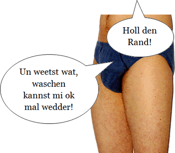 Man wenn miene Büx nich mehr togeiht un ick segg "Oh, de Büx is inlopen!", un de Büx seggt "Nee, du büst to fett!", denn geiht mi dat to wiet mit de KI. Meent Maat Jan Bildquell Ünnerbüx: hier