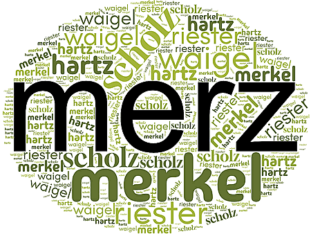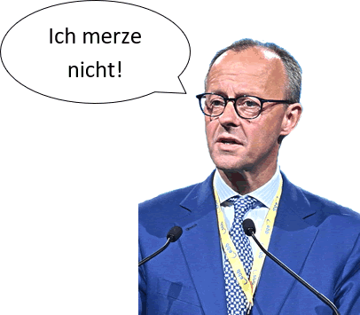 Un nu bün ik dor ankåmen, mi 'n Kopp tau måken, wat wull "merzen" bedüden künn. Denn dat is aftosehn, dat so'n Verb sik bald wiesen warrt. Wat hemm wi doch för'n Glück mit dei Nååms von uns Kanzlers un Kanzlerschen! Brandt, Schmidt, Kohl, Schröder, Merkel, Scholz, Merz: Dei Nååms sünd kort un gaut tau Verben tau verarbeiten. Nich uttaudenken, wenn'n Minsch as Leutheusser-Schnarrenberger in't Kanzleramt lannen wöör! Dor lett sik bi'n besten Willn kein Verb nich von måken. Oewer "Merz" is wedder so'n Steilvörlåch, dei Ball licht up'n Ölbenmeterpunkt, un wi schulln em nütten. Bitau wöör Merz wedder Komplexe kriegen, wenn Scholz un Merkel ein Verb kriegen, hei oewer nich. Dor warrt hei ganz depressiv von, uns' arme Fiete! Dat koenen wi nich riskiern! Also, wat kann, wat warrt opneechst "merzen" heiten? Låt uns spikeliern! Up ein Siet hett Fiete Merz ja dei Wählers düchtig achter't Licht föhrt. Mit Hülp vonne Gräunen ut'e Midd gellt up eins dat Verspräken nich mihr, dei Schullenbrems nich antaurögen; dei Brandmuer nå rechts un links wull un will hei nich inrieten, doch sien Gesetzesvörlåch, den Taustrom von Frömde in Grenzen tau hollen, bringt hei blot mit Stimmen von rechts un sien Kanzlerwåhl in tweiten Dörchgang mit Hülp vonne Linken dörch. Un hei dröömt villicht nich von'n grötter Düüschland, wer von'n Grot-Europa, wo dat in'n Osten noch Europa-Rebeits as dei Ukrain, Moldau un in'n Kaukasus gifft.