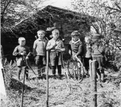1938 Speelplatzkuntrull in Lütten Corshagen Lieköllrige ut en Dörp 1938 stellt sik mit ehre Rennwagens to Paraad up. Ole Rööd vunn Drahtesels un ole Kinnerwagens, een hannig in en bestimmte Wies bögte Draht, trecht weer de Rennwagen. Wenn een nau henkickt, hebbt nich all enen.