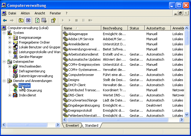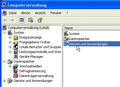 In de Computerverwaltung de Dienste und Anwendungen apenmaken.