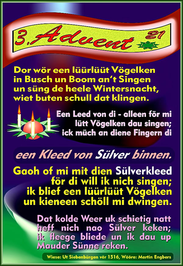 Wööre: Martin Engbers Wunnerwark Musik: Gerold Fuhler, Martin Engbers Bild: Ludgerd Lüske 12.12.2021 |