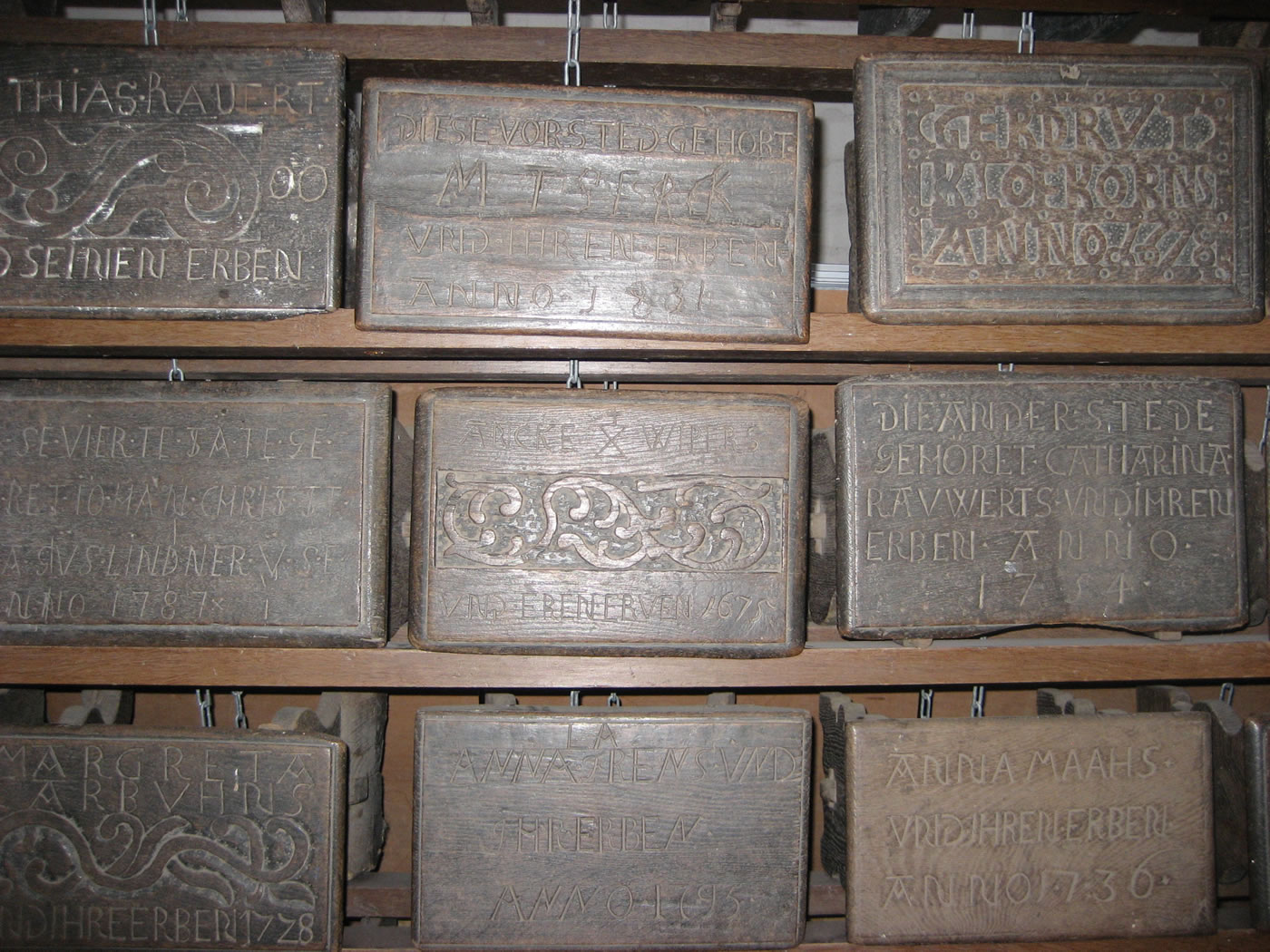 Dor sünd Namen rinsneden, Johrs-Talln un ok beten wat an Verzieren.