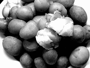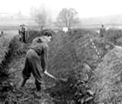 De Tüffelmiet werr noch nich ganz mit Ierd tauschmeten, dat de Tüffeln na båven noch wat dampen kunnen. Dat harr mien Grootvader ehr seggt. In de Düsternis güng Oma hen na Tüffelmiet, ik flink na. An beide Sieden weer de Tüffelmiet schön fast un hart inpackt. Ik mit den Korf op de Miet, un Tüffel boven ruut håålt. Op alle Vieren kümmt mien Grootmudder op de Tüffelmiet baven an. Sei rutscht af un rullt na ünnen. Sei blifft in den Graven liggen. Sei hett op den Weg na Huus nix, aver ok gornix seggt.