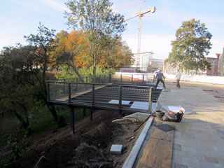 worden Spalierhölter upstellt, de nu mit greun Planten