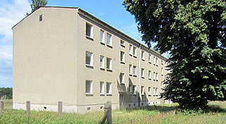 von Gebäude und ein leeren Wahnblock vun dei ehemaligen Mitarbeiders.
