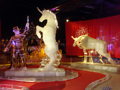 In dei Mitt grient mi, uprecht stahend, eine sihr korpulente Soeg an. Mit dit Karussell tau führn wagen nich mal dei Görn. Wecker will ok einen kollen Nors kriegen? Ick begäw mi in Richtung Utgang, wiel ick richtig dull verklamt bün. Faststellen möt ick, dat disse Ieswelt noch schöner is as dei von 2011. Ut jede Iesskulptur, egal ob ut witt Ies orrer dörchsichtig Ies, hemm' dei Künstler ut Russland, Ukraine un Polen allens akribisch ruterarbeit't, wat jede Figur an Fienheiten bloten hemm' kann. Bloten schad', dat disse Kunst äbenso vergänglich is as dei Sandskulpturen. Dei Besäuk hett mi gaut dan. Hart un Seel' hemm' uptankt, wat in disse Johrestiet bannig nödig is. Dat wi Krink-Frugens nastens uns bi Kaffee un Kauken upwarmen daun un noch unbedingt Geld utgäben möten, gehürt tau dissen Namiddag un is woll ok tau dei Verkopsstrategie von Korl.