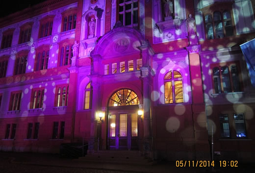 Lichterwoch' in Rostock vun Hans-J. Grebin Siet dörteihn Johr lüchten un geistern in dei iersten swatten Abendstund'n üm denn Universitätsplätz, miern in Rostock, farwich Lichter.