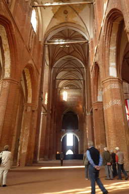 De Turm hett siene 82 m. Mit Führung kann man rup. De Angestellte hett sick sogor as Mönch verkled't. Dat passt tau dat, wat ut historische Tieden tau seihn is: Loprad, Backsteinherstellung, 3D-Film von den'n Bu. Wenn wi mit de ganze Grupp hier sünd, kieken wi uns den'n Film bestimmt an. Bet St. Georgen sünd dat woll bloten 100 m, un dortwüschen is noch de Fürstenhoff mit siene wunnerschönen Reliefs.
