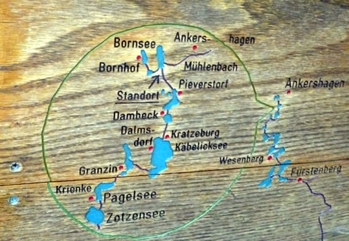 Üm tau dei Quell von dei Havel tau gelangen, führten wi na Ankershagen. Ein Dörp, dat dörch den Entdecker von Troja weltbekannt worrn is, dörch Heinrich Schliemann. Eigentlich harr vör Johrhunderten dei Havel kein Quell, sünders wüür dörch einen See spiest, den Bornsee, bi den Uurt Bornhof, nich wiet von Ankershagen wech. Noch inn 13. un 14. Johrhunnert kaem dat Waarer von hier dörch anner Dieks in den Mühlensee.