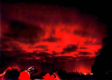die Bombenkrater zeigen,