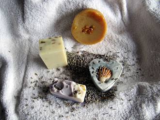 Vun Hand siedte Naturseep mit Lavendelstreu