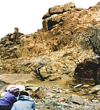 in'n Sinai. Un den stegen wi in St. Katharinen in de Hochbargen up en smallen Padd in den Hochsinai in. Dat güng all mächtig up de Puust. De Dromedare sleppten den Etenkraam un güngen up minner bargige "Hannelsstraten". Wi harrn zwei Militärslaapsäck, de Isomatt un wat een so bruukt in unsen Rucksack. Dat weer swoor naug bi de Kladdderie un Kruperie. Wi harrn al in de Negev poor maal buten proovslapen. Dat weer nu keen Probleem. Un en Supp kakten de Beduinen för uns avends ok, wi müßten bloots allens sammeln, wat brennen dää.