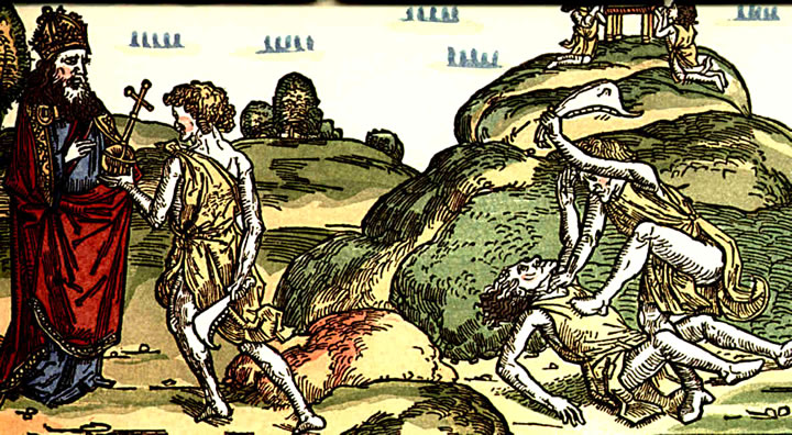 in de Welt mit an. Kain hett sienen Broder Abel doothaut. Un so güng