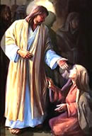 vörbi un smitt sik vör Jesus up de Eerd. Se fleht em an.
