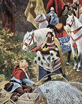 Se kennt all de Ballade vun Johann Nepomuk Vogl Heinrich der Vogeler: Herr Heinrich seet an Vagelheerd He is dor up ut, enen goden Vagelfang to maken, un he ist gor nich lustig, as he dorbi stöört warrt dörch Riederslüüd, de mit luut Huufslag un Wapenrötern uptrecken deen. Se bringt em de Naricht, dat he to 'n Kaiser utköört is un nu enen nieden Updrag uttofüllen harr. Un denn heet dat an 'n End: Dor blick Herr Heinrich deep anröögt