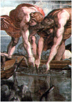 ![]() Raffael, Petri Fischtoog, ut Wikimedia Commons De Geschicht vun Petrus sienen Fischzug erinnert mi an dat Book vun Ernest Hemingway: De ole Mann un dat Meer. 84 Daag is de Angler Santiago buten up de Karibische See mit sien Kahn rümschippert. In de eerste Tiet hett nix anbeten, aver denn kreeg he enen bannig groten Fisch an 'n Haken un nu leep dor en Kampf af, in den he ünnerlegen to sien schien. Aver he geev nich up. Dumm is dat, keen Höpen to behollen, dach he, ik glööv, dat is ene Sünd! Aver an 'n End hett he blots noch en Fischgeripp an de Stripp, wiel de Haifisch nix överlaten hebbt. Un de Fraag kannst stelln: Langt dat Höpen, hett dat enen Grund, de driggt, wenn du jümmers wedder daltrocken warrst un all Bemöhen kenen Sinn un keen Ziel hett?