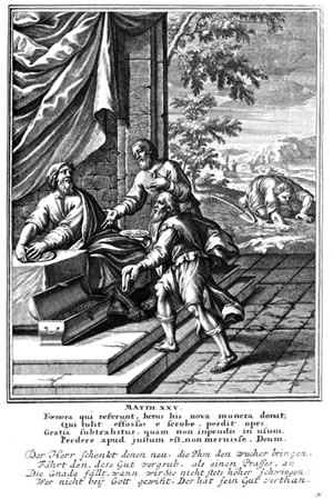 Dor is de junge Mudder mit veer Kinner, de vun enen besapen Autofohrer dootfohrt worrn is. Kann een dat verstahn? Kann een dor överhaupt noch Globen hebben? Ik meen, dat is de Laag vun den drütten Mann. Aver he hett sik nich ganz vun den Gloven afwendt. He hett pütscherig upbewohrt, wat he övernahmen hett. Nee, ganz ahn Gloven un Religion geiht dat nich. Dat gifft en höger Wesen, un de christlich Grundlaag, de mutt bestahn blieven. "Ik kunn mit Jesus Christus egentlich nich klor kamen, aver de christliche Bedriev, de mutt wiederlopen. Wat sall een anners maken: Ik laat mi christlich truun, mien Kinner mütt döfft warn, ik schick se ok to 'n Konfirmandenünnerricht, ik bliev ok Mitglied in de Kark un betahl mien Karkenstüür." So stellt he sik up den christlich Standpunkt, man sienen Globen, den wickelt he in sien Snuufdook und bewohrt em up. Aver dor is Jesus nich mit inverstahn. Ja, wenn he em aflehnen wörr un em den Globen vör de Fööt smieten wörr, dennso weer dat en klor Saak. Man nu höllt he sik de Achterdöör apen: investeern wull he nix, aver de Brüüch ok nich afrieten. Un so is dat bi vele Minschen hüüttodaags, ja sülvst bi de Kark sünd all up dat Bewohren ut. Ok wi hebt uns Talent, dat Gott uns geven hett, inbuddelt. De Karkengebüden sünd all fein up nie maakt, dat hett keen Tiet geven, wo in Westdüütschland de Karken un all de Kunstwarken so goot in 'n Schuss weern. Aver de Lüüd bekieken se sik blots as Museum, för de Pleeg vun den Globen, dor gaht se nich to Kark. "De Gottsdeensten, dat is allens olen, vörbigahn Kraam, de nicht in uns Welt passt!" Und wi, de mit de Kark verbunnen sünd, wi hollt dor nie gegen un hebbt ok nich den Moot, mit unsen Globen wat Nieges to wagen. Wi blievt bi de olen Erfohrungen un Formen un sekert uns af und kriegt nich den Dreih. De Upgaav, de de Minschen vun ehren Schöpfer mit up 'n Weg kregen hebbt, is, dat wi uns "Talenten", uns rieke Gaven, de Gott uns anvertruut hett, insett in ene Welt, de dat so dringend nödig hett un Teken to 'n Höpen up en beter, minschlich Leven bruukt.