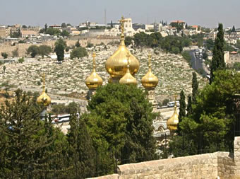 de Stadt Jerusalem seihn. To Föten vun den Olivenbarg stünnen