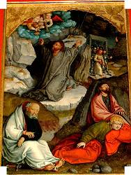 Jesus aver güng alleen up den Barg un beedte to sienen Gott Vadder.