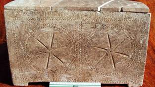 Ossarium in dat in Sandstein slaane Sippengraff, wo all de Ossarien