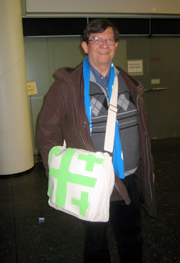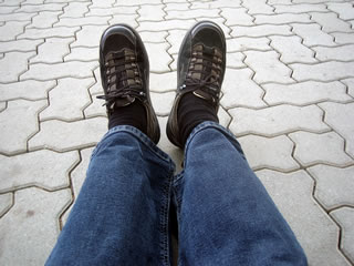 noch, nix wi hen no den Stand von dat Gottesdienstinstitut. Langer Dag, Fööt sünd mööd. Wi sett uns noch vör dat CCH un verpuust uns.