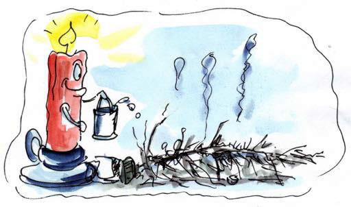Brennt Kerzen an Boom,