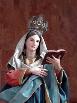 Jesus-Kind in'n Arm, nee, se hett een Book in de linke Hand. Un ut