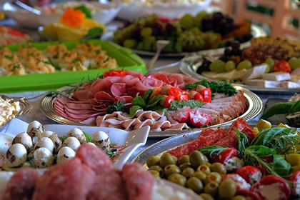 Mi harr man för de Musik angascheert un mi dor n kommodige Eck towiest, wo ick mien ganze Equipment all een Stunn vörher opbuut harr. Dat grote Tam-Tam mit veele Laudatien dormang begünn so gegen Klock söss un schull so bit deep Nacht gahn. As Muskant musst du liedens langen dorbi tokieken, wenn so n Droomschipp-Büfett vör di in wiete Feern rüückt un all de lekkern Langusten, Hummers un Perlhöhner, de düer Sekt un gode Wien in deelwies veel to dicke Büker verswinnen deit....