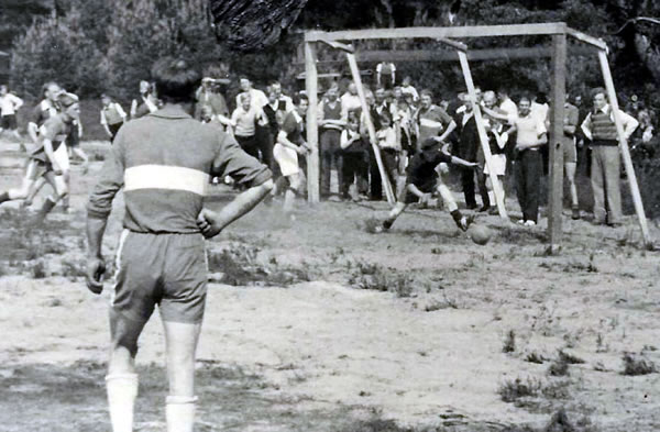 Peter Abram weer en Vörbild för siene Mitspeler, ievrig, jümmer bi de Saak un sik nich to schaad, sik gewaltig aftorackern. Ok an dissen Dag acker he as'n Peerd. As sien Mitspeler den Ball von de Eckfahn vör dat Door schööt, sprüng Peter na vörn un bugseer dat Ledder över de Lien. Hermann Lütjen stünn in dissen Ogenblick nau blangen Peter, kunn dat Door aver ok nich vermasseln. To'n Glück harr ik mi jüst achter dat Door posteert un den Doorschööt op mienen Film bannt. Dit Bild schull sik woll goot maken in't Daagblatt! Dat duur nich mehr lang, un dat Speel woor affleit. De Scheeßler harrn de Meisterschop wunnen, un Peter Abram kreeg as Krönung von sien letztet Speel ok noch uns Pokaal as bester Sportsmann.