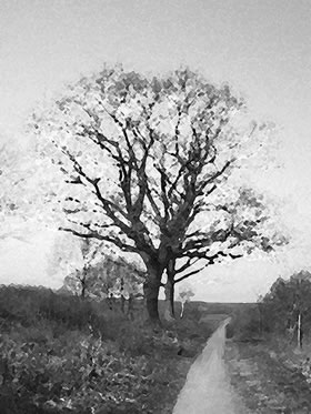 See kikt wäär över de Sandpadd hen gröön is he wuurden. Man sücht blossich noch twee schmoale geele Spoarstriepens in d Mirden. De Wäch geit dat netso as hör ok. He word ok hoast nich mehr bruukt. As dat Läven dor noch up langs gung, dor leep he as son geelen Sünnenstriepen noa de beiden roden Bööken hen. He har Huus un Bööm tosoamenbunnen. As see noch bruukt wuur, dor hett see ok lücht as son grooden Süän. Nu sünd see beid över see un de Padd. See düken elker Dach son bäten mehr in dat Schummerdüster van d Vergääten in. Nümms dreit mehr noa hör to tüschen de Tichelsteenbööken rin een Pieplängt noa d Silbersee. Eenzich Wilmoa mit hör trillernd Lachen kummt Dach för Dach mit hör oled Rad ansuust. Wilmoa is de jüngste Dochter van de näächst Noabers see is noch bi de Ollen in d Huus. Veertich word see token Haarst. En Mannsbild hett see nich ovkräägen wiel see in d Kopp woll n bääten eenfach strikkt is. In d Haart is see en Kind blääven un bringt stilkens vöör en körte Tied Sünnenblenkern in de düster Koamer. Dat Luuren dorup, dat see kummt, dat is all meist, as wenn en warmen Wind dör dat Huus weiht. Noa Krischoan sien Dod hett see Elektrisch in d Huus krägen. Ok son Stromheizung. In d Köäken steit oaber noch de oole Koakoaben wor veer Potten toglieks up koaken kunnen. De Teekädel up de busterke iisterne Ploat wee stoadich an singen dat is nu ok vöörbi. Nu brengt Wilmoa, wenn see kummt, Middachs dat Füür togaang. Denn rükt dat in d Huus wäär so as domoals noa Törf un Rökerkoamer.