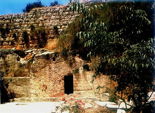 Jesus in den Goorn, wo sien Graff is, vör ehr steiht.
