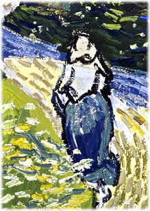 Pinsel un füng an to maolen. So uk de Karken van Man in de lessden Maonde van sien Leven köm de Fraog naa Gott doch noch eis weer. Schients was he dor wull noch nich mit fardig. Dor vertellt villicht uk de Wege van, de he lünker un rechter Siete üm de Karken ümto maolt heff. Wor geiht dat nato? Un dor geiht en Menske üm de Karken ümto. Söch se de Döörn? Will se dor villicht ringaohn? So as Vincent van Gogh, so fallt dat vandaoge uk veele Lüüe schwor, to glöven. Se hebbt villichte uk wat belevet, wor se sik segget: Dor will ik nicks mehr van wäten. Man dat Leven gaiht wieder... Un manges kummp dat Thema doch noch eis weer. Is dann good to wäten, dat dor en Weg is. Un dat de Döörn aopen steiht. Un van binnen löchtet dat Leven van buten dör de Fensters, uk wenn 't van buten faoken bloß schients gries utsüht. "Dat