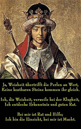 Geschichten ut de Bebel und de Kark betreckt. To'n Bispeel: Wi kennt de Spröök all good; liekers, woher kaamt denn nu all düsse Wiesheiten? Anfungen hett dat allns mit Salomon sien Spröök. Mennicheen vun düsse Gedankens hett he ook al in de olen Schriften funnen un hett se mit in siene Sammlung opnahmen. Een Bispeel: De Minsch leevt nich vun Broot alleen. Dat steiht al in't 5. Book Mose. Wi sallt ok op den Herrn sien Wöörd höörn, denn dor binn licht de Hölp för uns Leeven. Nu kunn man jo dinken: Wat sall uns denn dat hüüttodaags noch seggen, dat is doch all so lang her! Jo, dat is wohr. Liekers, geiht uns dat hüüt