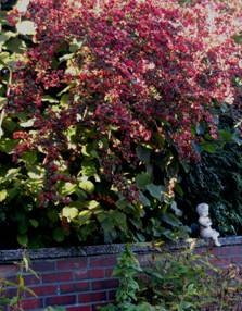 Wi sünd aver ut dat Paradies verdreven. Un dat güng so. Baven an de Muurkant vun de grenzbebuut Garaasch seten sik de Amseln mit en blage Beer vun'n Efeu in'n Snavel. Se lutschten, woans weit ik nich, dat Fleisch vun den Karns. De Saam fööl daal, daal up de Ierd vun uns orrer Navers Grundstück. Över den Gemeinen Efeu kannst bi Wikipedia lesen:
