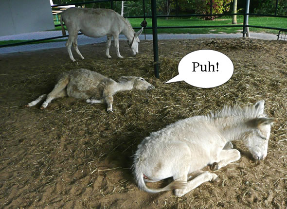 De wilde Jageree duer so lang, bit wi beiden lütten Esel maddelig un halv doot in den Sand legen. Wi müssen uns verpussen.