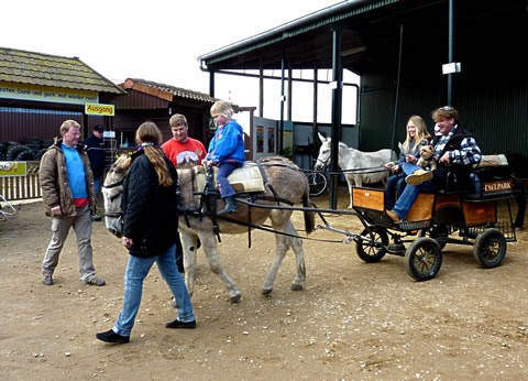 Een Kind harr in de Kutsch keen Platz funnen. Dat seet ganz stolt up den Esel.