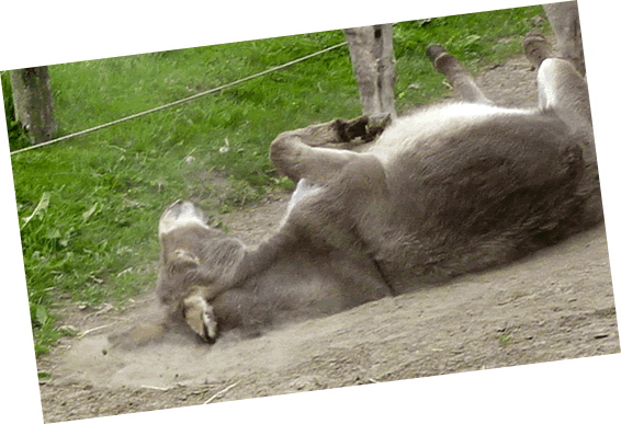 Denn wölter se sik in den Sand. All veer Been na baben!
