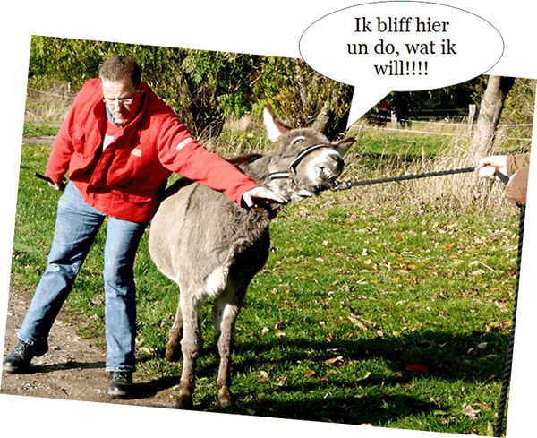 Dor müss de Baas kamen. De legg ehr en Halfter an un trock Stina an en Lien wedder up den Weg!