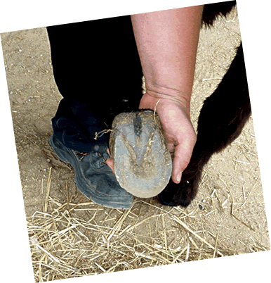 En Hölpsmann böör een na den annern Huf vun Lisa in de Höcht un kratz mit en scharp Mess den Dreck ut de Ritzen.