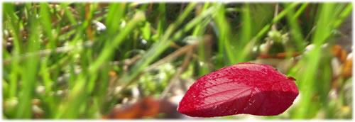 Dat Cornus-Blatt lücht rood un satt. Sien Stengel sitt ja wohl nich mehr ganz fast. Man daför wasst in't Gras de Poggenstohl.