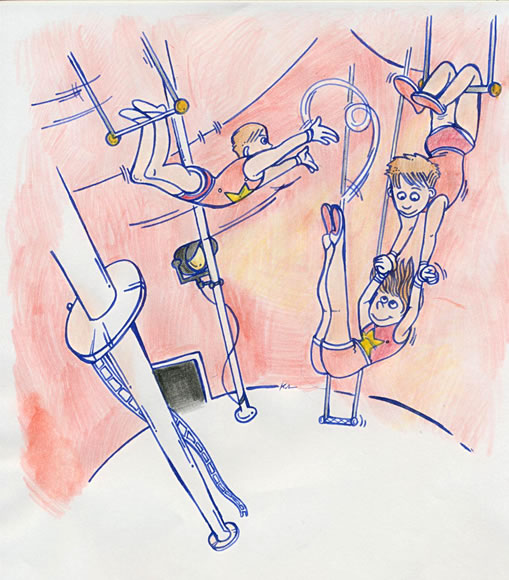 Elefanten un Tigers geev dat to sehn un een Giraffe, de kunn mit hör laang Hals bold bis in de Spütz van dat Zirkustelt reichen. Opoa sää, de brukt de Zirkuslüü bi dat Telt upboon, wiel een Kroan to düür is. Dat sää he mit so een holten Gesicht dat muß denn joa woahr wääsen.