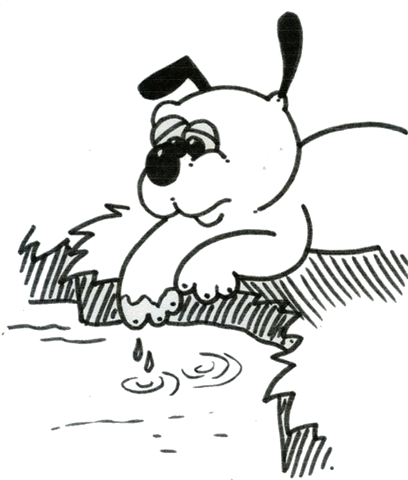 Dat düürt een heel Settji, bit he dat groode Lokk in sien Pans mit Woater vullschloahn hett. He is mit beid Vöörbeen'n in d' Woater glääden, un maakt, dat dat sien Pienpood good deit. He lächt sük hen un lett dat Been, dat hüm so säär deit, in dat kölich Woater hangen.
