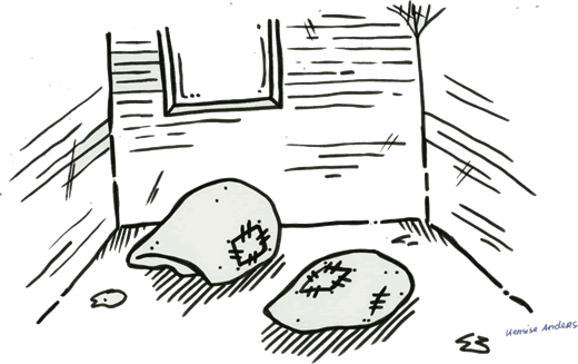 tomööt koamen sünd. Wiiderkoamen is he vandoach ok nich. De heele Dach is he üm dat Dörp rümschläken jeder Minüt kieken un rüken un lustern, ov irgendwons wat föör hüm to frääten is. Mülltünnen har he all in d' Ooch hat. Dreemoal har he versöcht, an een rantokoamen dreemoal hevvt de Lüüd Steenen achter hüm anschmääten. Een dorvan hett hochkant siene Schuller droapen bi d' Upträäden schoot hüm dat as Füür dör d' Liev. In sien Noot hett he all Gras fräten. Dat is hüm nich good bekoamen. Dor muß he noa würgen un niks wee in de Buuk, wat he utspeen kunn.